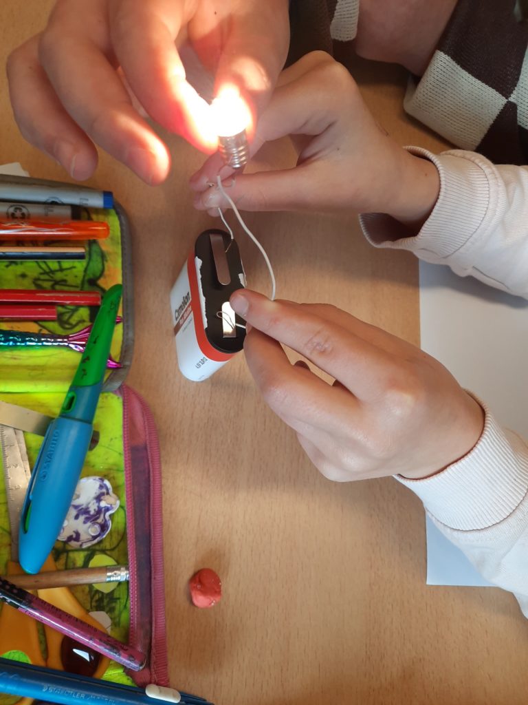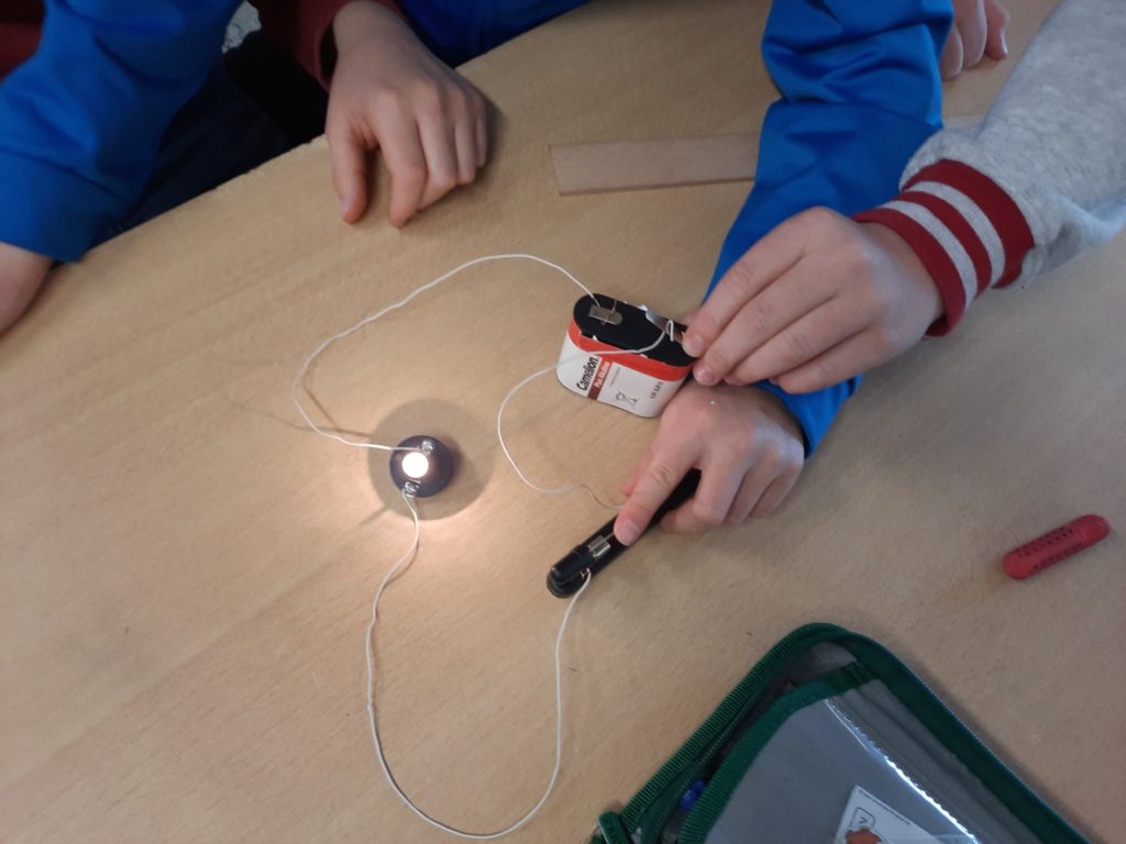 Dieser Forscherfrage gingen die Viertklässlerinnen und Viertklässler des Morgensterns nach. Sie experimentieren momentan motiviert und begeistert zum Thema Strom. Auch die nächsten Wochen werden sie thematisch dazu arbeiten, ihr Vorwissen einbringen, forschen und Neues lernen. Glühlampen, Batterien, Akkus, Kabel, geschlossene und offene Stromkreise, Leiter- und Nichtleiter, Reihen- und Parallelschaltung stehen beispielsweise auf dem Programm.